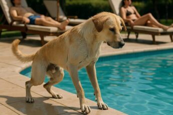 Собака неожиданно прыгнула в бассейн: отдыхающие начали возмущаться, пока пес не вышел из воды, ведь