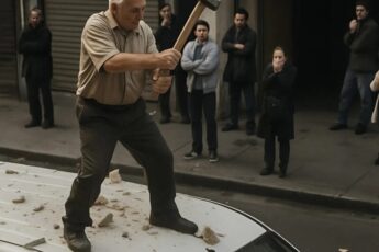 Мужчина стоял на крыше машины и разбивал ее кувалдой: когда прибыли полицейские и узнали причину, были просто в шоке 😱😱 На узкой улице старого квартала внезапно раздался резкий, глухой звук, будто кто-то с невероятной силой ударил по толстому металлическому листу. Прохожие вздрогнули и обернулись. Источник шума был очевиден: на крыше белого фургона стоял пожилой мужчина с седыми волосами, сжимая в обеих руках тяжёлую кувалду. Люди застыли в изумлении — и ужасы в их глазах росли с каждым ударом. Металл под его ногами прогибался и трещал, крыша уже покрылась глубокими вмятинами, куски краски и металла летели на асфальт. Лобовое стекло фургона, недавно целое, теперь было в трещинах, и с очередным ударом кувалды оно рассыпалось на мелкие осколки. Каждый новый взмах сопровождался звоном, глухим стуком и эхом, разносившимся по улице. На ходу мужчина что-то выкрикивал — слова сливались в хриплый поток, в котором слышались только обрывки фраз и крики, похожие на отчаянные мольбы или проклятия. Никто из прохожих не мог понять, что говорит пожилой мужчина. Один из прохожих, дрожащими руками доставая телефон, позвонил в полицию. Через несколько минут на улице завыли сирены. Патрульная машина резко остановилась, и двое полицейских бросились к фургону. Осторожно, но решительно, они спустили мужчину с крыши, вырвав у него кувалду. Когда он оказался на земле, никто не ожидал, что произойдёт дальше. Мужчина не сопротивлялся. Он сел прямо на бордюр, обхватил голову руками и начал тихо всхлипывать. Полицейские, пытаясь понять, что произошло, присели рядом и стали задавать вопросы. То что они узнали, повергло всех в шок 😱😱 Продолжение в первом комментарии👇👇 Мужчина стоял на крыше машины и разбивал ее кувалдой: когда прибыли полицейские и узнали причину, были