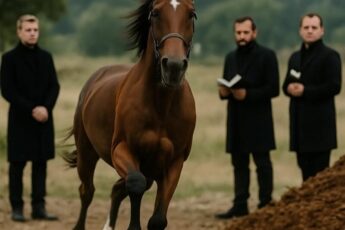 Во время похорон из леса появилась лошадь и побежала прямо к гробу: присутствующие были в шоке, узнав, зачем животное так делает 😱😨 На окраине деревни, под сдержанный плач и шорох ветра, проходили похороны. Деревянный лакированный гроб уже стоял у вырытой могилы, земля рядом была свежей, еще влажной. Несколько мужчин читали молитвы, другие стояли молча, опустив головы. Атмосфера была тягучей и скорбной. И вдруг — как гром среди ясного неба — тишину разорвал топот копыт. Все обернулись. Из лесной чащи появилась лошадь. Грациозная, сильная, с блестящей каштановой шерстью и белым пятном на лбу. Она бежала прямо к людям, пронзительно смотрела вперед. Паника охватила присутствующих. Кто-то закричал, другие кинулись врассыпную. Подумали, что животное дикое, испуганное, возможно, даже бешеное. Кто-то выкрикнул, что оно может растоптать могилу, навредить людям — ведь лошадь мчалась на полной скорости. Но, не обращая внимания ни на крики, ни на суматоху, животное продолжало движение — и вдруг резко остановилось прямо перед гробом. Почти впритык. Ни на шаг дальше. Лошадь стояла, словно окаменев, не моргая, не двигаясь. Люди начали медленно возвращаться, но подойти близко никто не решался — слишком непредсказуемо вела себя животное. Попытались отогнать — громкими голосами, руками, жестами. Но лошадь будто не видела никого, кроме гроба. Она не собиралась уходить. Когда пришло время простится с покойным, лошадь сделала то, после чего все оцепенели от ужаса 😱 😱 Продолжение в первом комментарии👇👇 Во время похорон из леса появилась лошадь и бежала прямо к гробу: присутствующие были в шоке, узнав