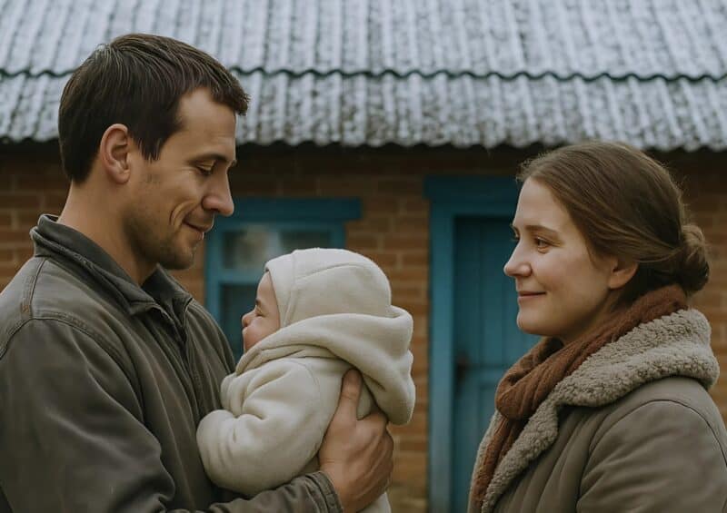 Она осторожно подошла к двери, приоткрыла — и увидела мужчину лет сорока, в тонкой куртке, с промокшими рукавами. В руках он держал младенца, укутанного в одеяло.