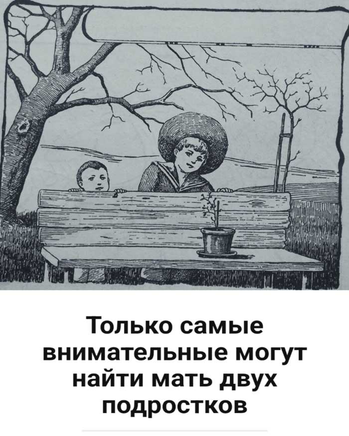 На первый взгляд — обычная старая иллюстрация: два мальчика выглядывают из-за скамейки в парке, деревья без листвы, серая зима, и ни намёка на загадку. Но подпись под изображением гласит: