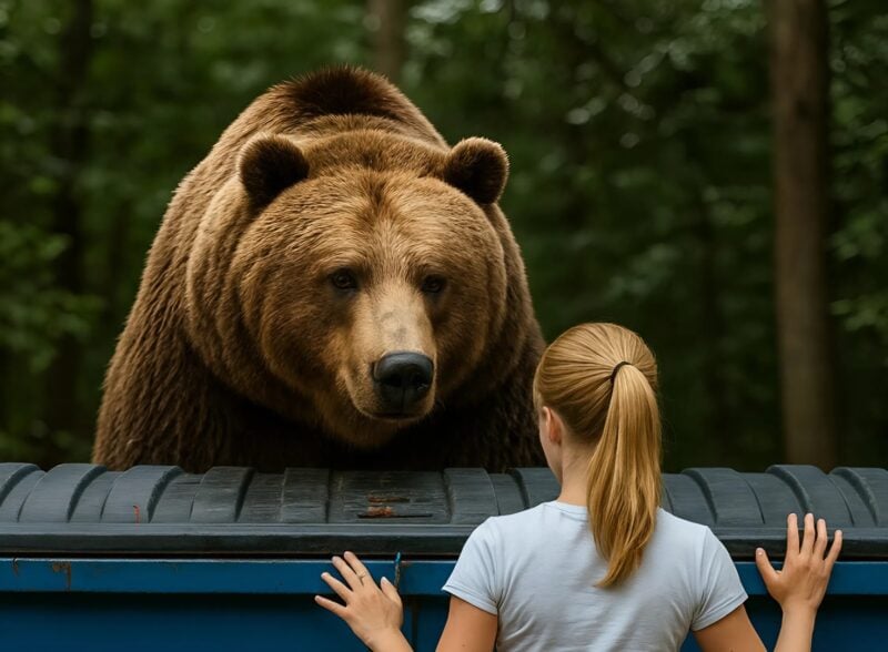 Медведица стояла возле мусорного бака и стучал по крышке своими тяжелыми лапами: я открыла бак и замерла от ужаса 😱😱