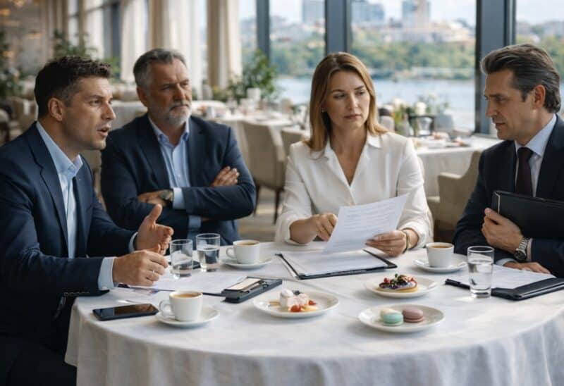 Юрист медленно выпрямился. Партнёр перестал улыбаться. А бизнесмен впервые за вечер понял, что рядом с ним сидит не «для вида».