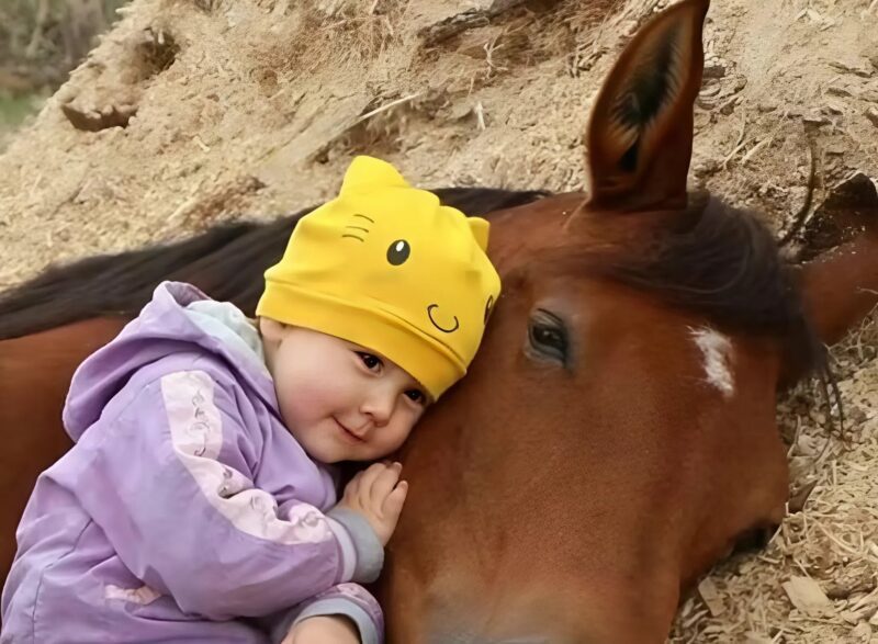 Она обнимала её за шею, прижималась щекой к мягкой гриве, хлопала ладошками по тёплой спине. Иногда они играли вместе на сеновале, а бывало даже так, что дочка засыпала прямо в сене рядом с лошадью, будто это была её лучшая подруга.
