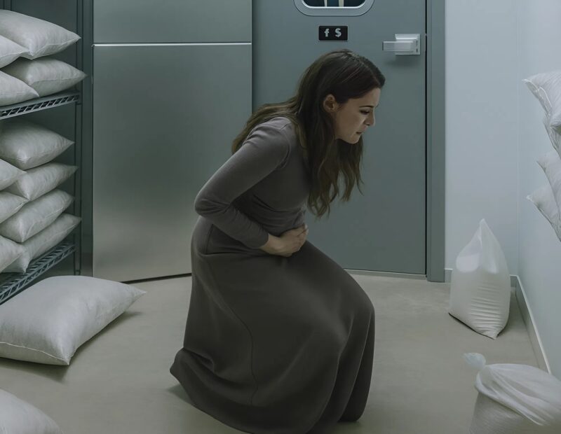 Температура в камере была близка к нулю. Анна дрожала, кричала, умоляла, но никто не слышал. От стресса у неё начались схватки. Она упала на пол, прижимая руки к животу, пытаясь сохранить хоть каплю тепла.
