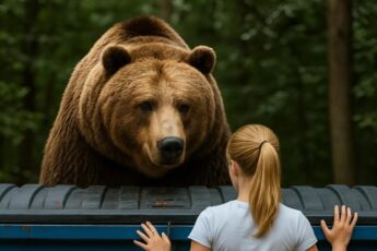 Медведица стояла возле мусорного бака и стучал по крышке своими тяжелыми лапами: я открыла бак и замерла от ужаса 😱😱 Мы работаем в лагере, прямо у самой кромки леса. Туристы приезжают сюда на пару дней – подышать свежим воздухом, посидеть у костра, погулять по тропинкам. Но у жизни рядом с лесом есть и обратная сторона: мы почти каждый день видим диких животных. За время работы уже знаем все правила безопасности, у нас всегда под рукой фонари, свистки и сетки. Обычно всё проходит спокойно, но недавно случилось такое, чего я точно не ожидала. Было раннее утро. Я вышла из домика и сразу заметила у мусорных контейнеров огромного медведя. Сердце в пятки ушло. Я замерла, держа руку наготове – если что, придётся стрелять снотворным. Но медведь не проявлял агрессии. Он просто стоял, не шевелясь, и смотрел прямо на меня. Я сделала несколько осторожных шагов вперёд. Он не отреагировал – только следил за каждым моим движением. Когда я подошла ближе, медведь вдруг поднял тяжёлые лапы и начал сильно стучать по крышке контейнера. Словно пытался сказать: «Открой!» Сначала я решила, что он учуял еду. В таких баках всегда остаётся что-то вкусное для дикого зверя. Но настойчивость его поведения меня насторожила. Я рискнула попасться зверю и приоткрыла крышку. То, что я увидела внутри, повергло меня в настоящий шок. 😱😱 Продолжение в первом комментарии 👇👇