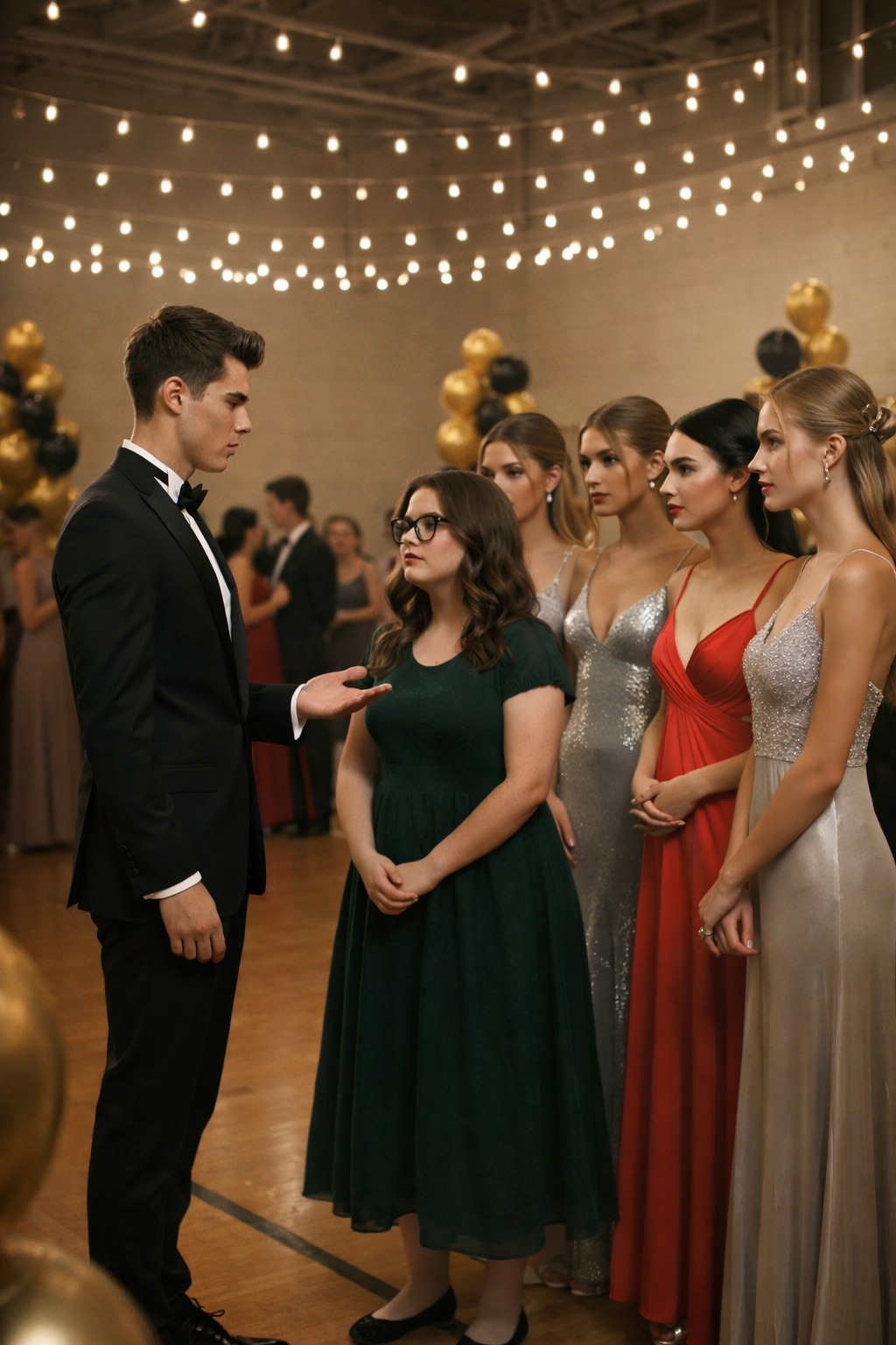 Вечер выпускного в школьном спортзале начинался как и сотни других выпускных: под потолком тянулись гирлянды теплых лампочек, на стенах висели черно-золотые шары, из колонок тихо лилась музыка, а девушки в длинных платьях осторожно придерживали подолы, чтобы не наступить на них.