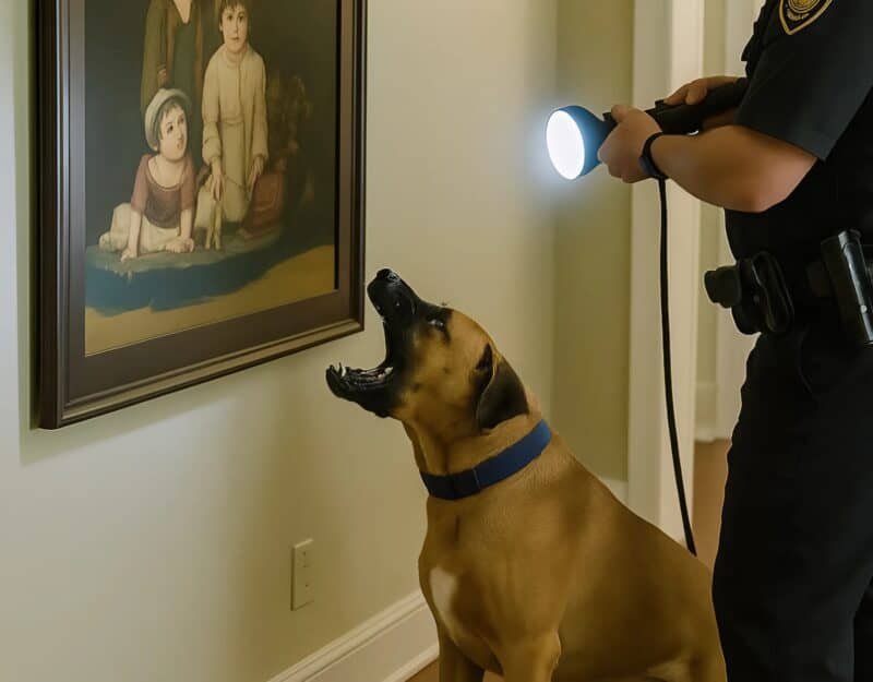 Соба во время обыска дома начала громко лаять на картину: полицейские были в шоке, когда сняли картину и увидели, что спрятано за ней 😱😨