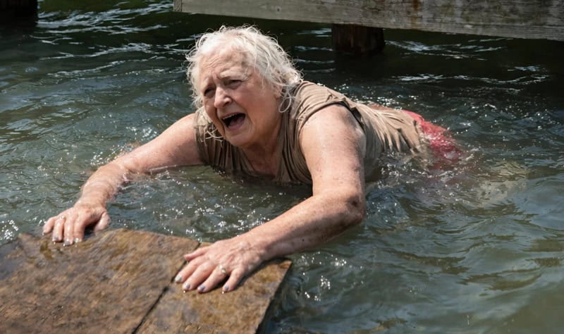 Она пыталась ухватиться за доски пирса, но руки скользили по мокрому дереву. Одежда тянула вниз, дыхание сбивалось. Она барахталась, глотала воду, снова уходила под поверхность.