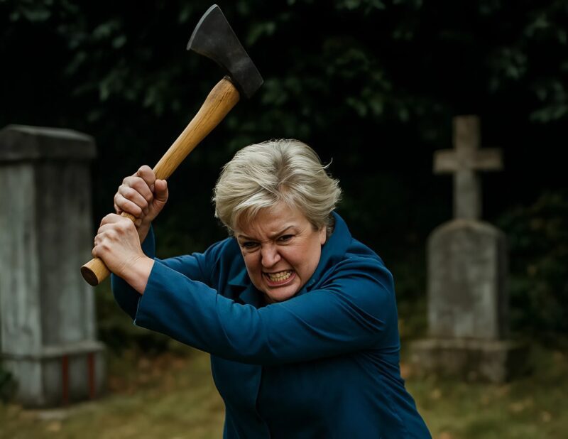 Погода в тот день была хмурой, тучи низко висели над кладбищем. Когда церемония началась и крышку гроба начали заколачивать гвоздями, мать вдруг вышла вперёд. Лицо её было бледным. Она поставила пакет на землю, достала из него топор и, пока люди не успели среагировать, замахнулась и со всей силы ударила по крышке гроба.
